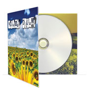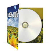 4-panels Carboard-Brochure typically used for Demos with full color printing. Printed 4 colors on both sides, disc hold by button, 350 gr.