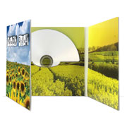 4-panels Digipack typically used for CDs with full color printing throughout with a clear tray. Printed 4 colors, clear tray, Digipack is die-cut, bent, stuck (glued). 660 gr.